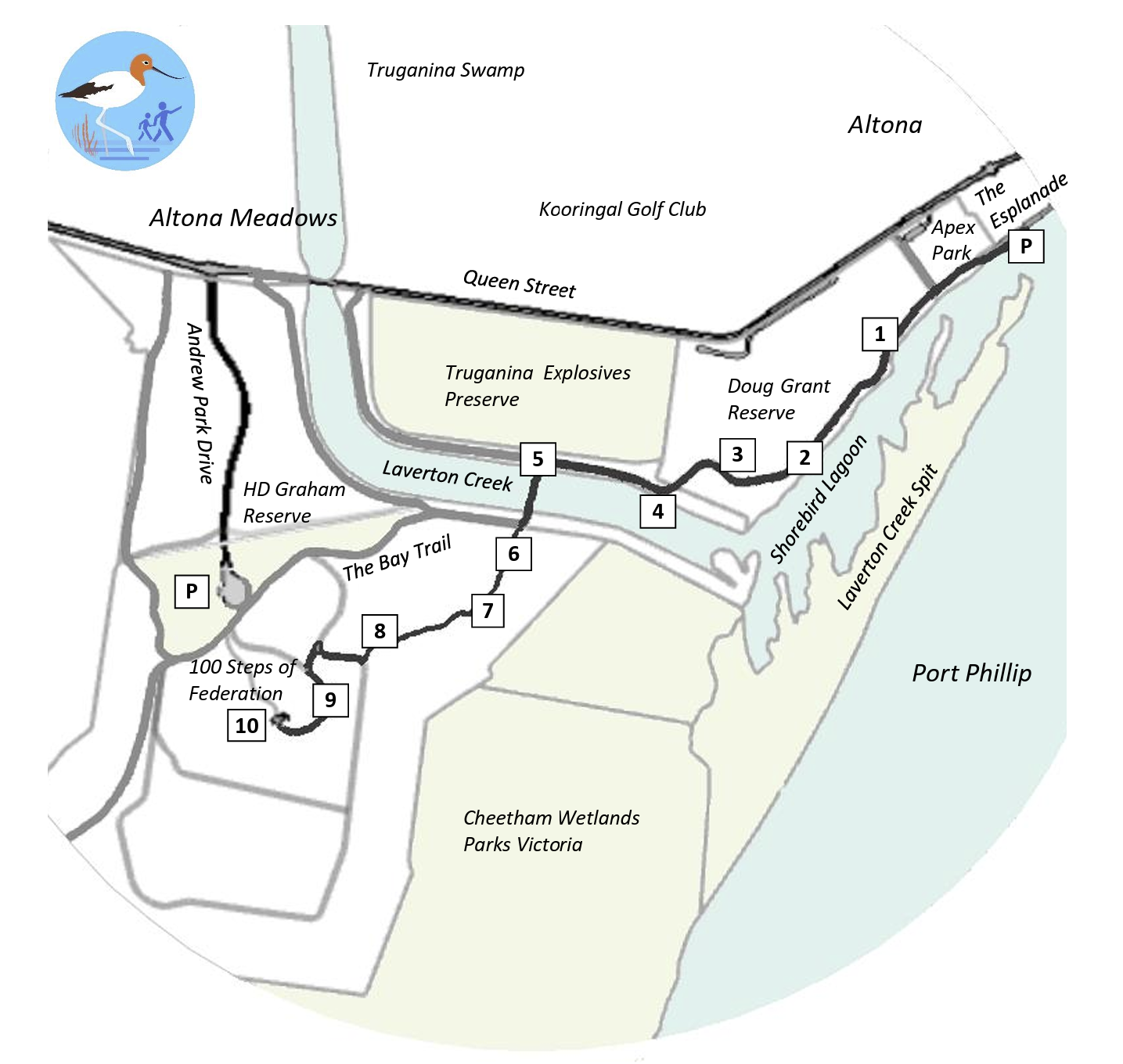 You could also begin your walk at Apex Park in Altona or near the Truganina Explosives Reserve, or do the various walks around Truganina Park the Hundred Steps of Federation.